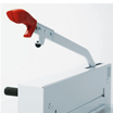 La tapa de seguridad con bisagra tiene que estar cerrada para desbloquear la palanca de corte para el proceso de corte.