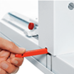 eguro y conveniente cambio de cuchilla sin remover cubiertas. El dispositivo de cambio de cuchilla cubre el filo de la cuchilla para proteger al operador.