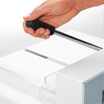 Cortes eficientes están garantizados por el pisón de papel de acción "fast flick". Inserte una pila de papel, pise el papel con la manija de presión - corte. .