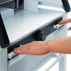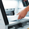 La cortina de seguridad de luz IR en el área de trabajo de estas guillotinas profesionales asegura el más alto nivel de seguridad y conveniencia de corte.