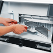 Cuchilla y pisón de papel pueden ser activados de manera independiente vía las barras de activación de dos-pasos con puntos de accionamiento separados para cuchila y pisón de papel.