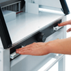 La cortina de seguridad de luz IR en el área de trabajo de estas guillotinas profesionales asegura el más alto nivel de seguridad y conveniencia de corte.